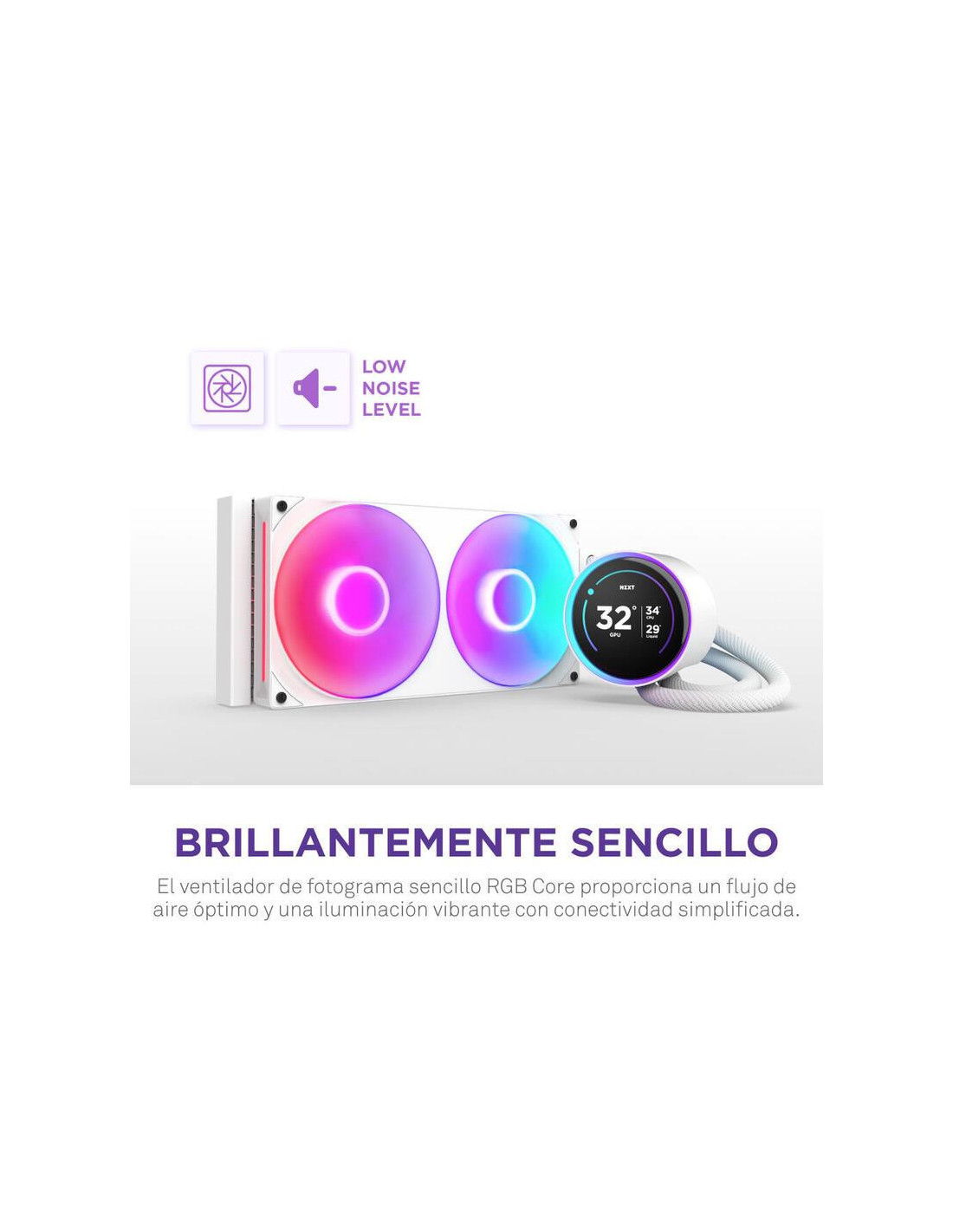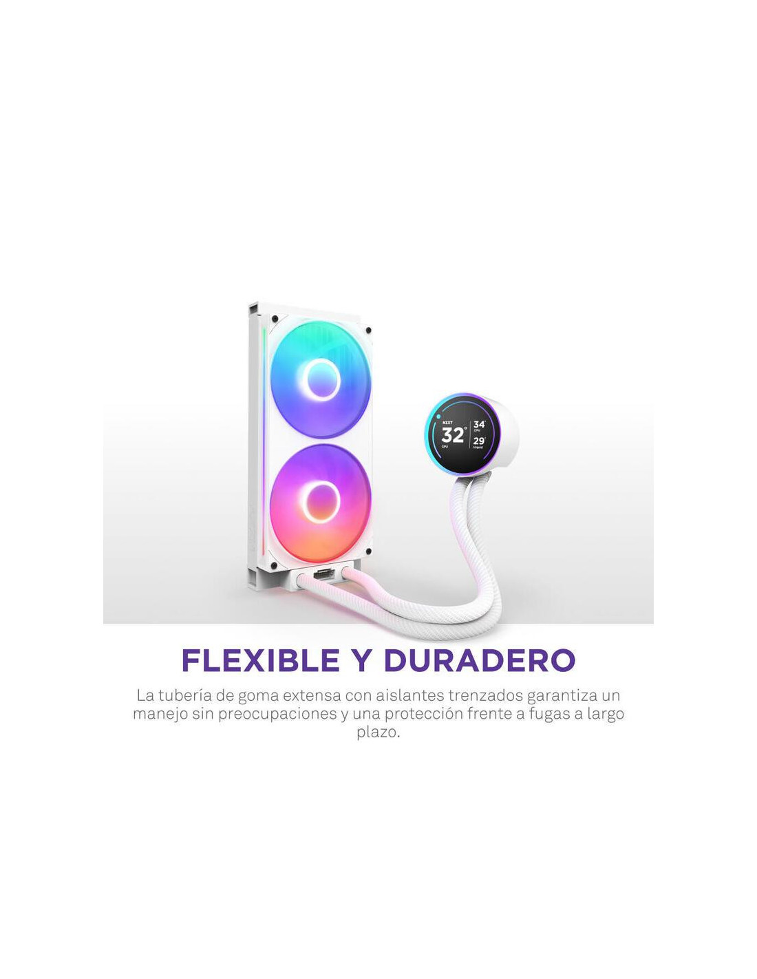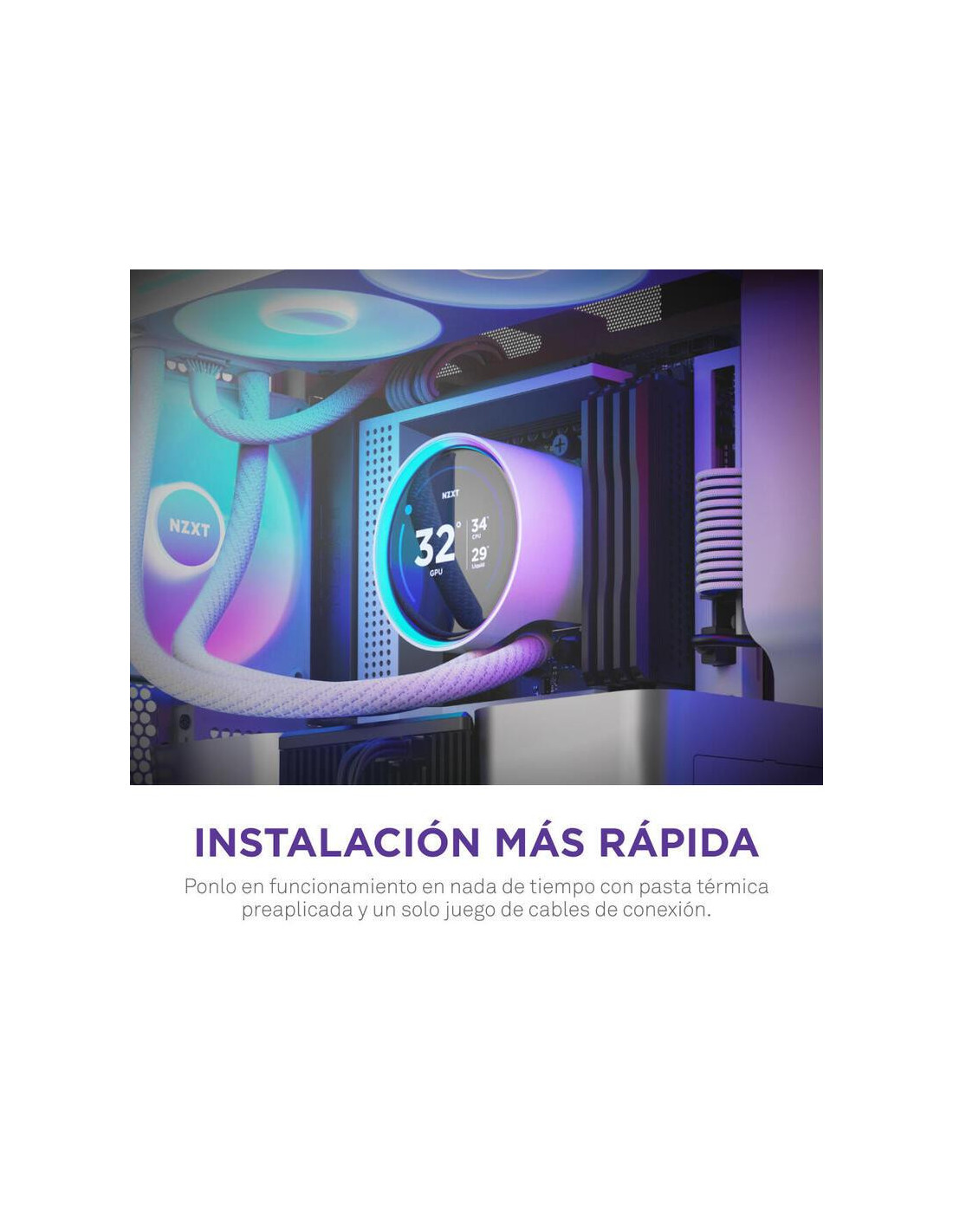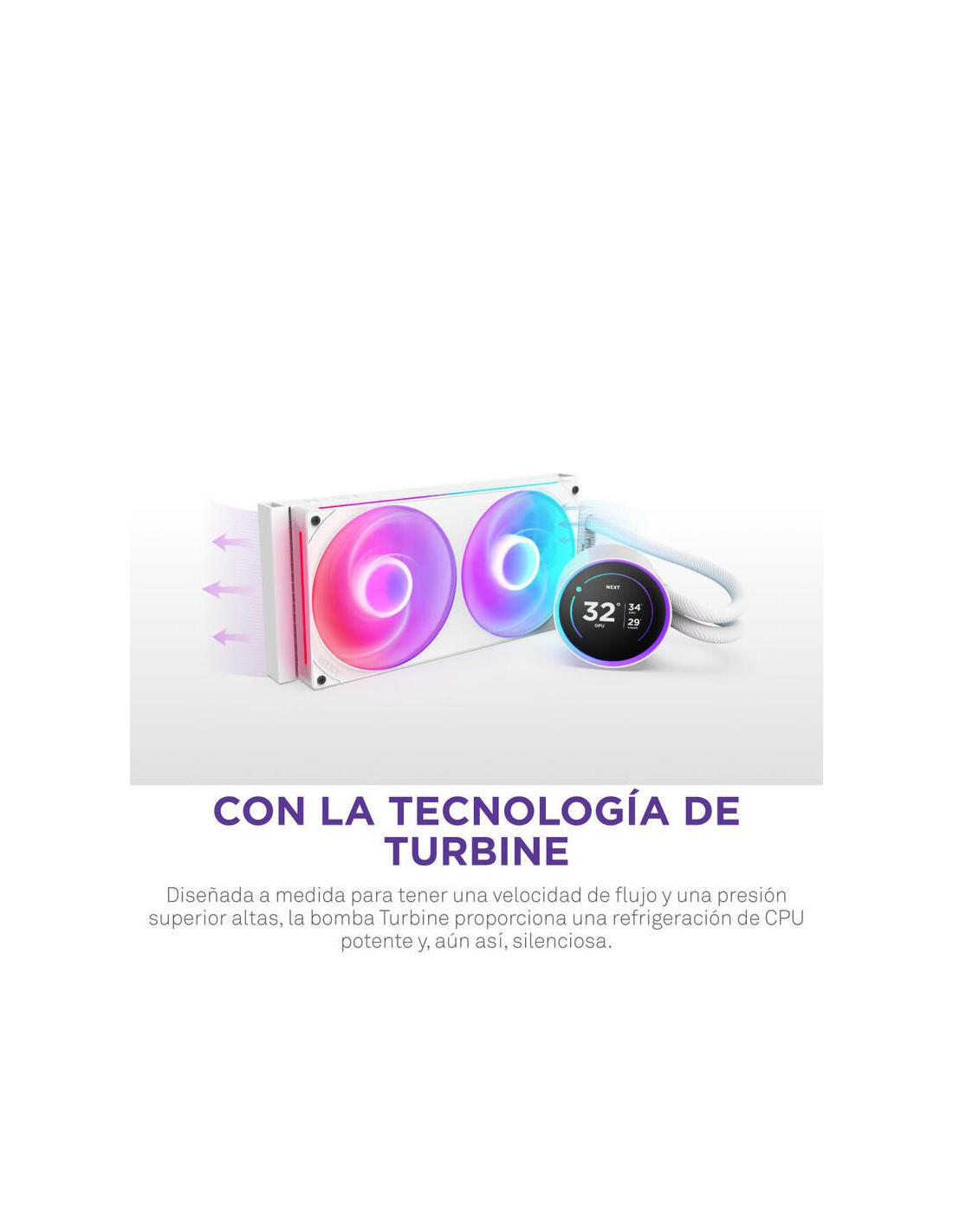 A bomba de turbina NZXT garante um excelente desempenho de refrigeração, enquanto os dois ventiladores de 14 cm proporcionam um fluxo de ar máximo de 98,61 CFM e uma pressão máxima de ar de 3,2 mmH2O, mantendo as temperaturas baixas mesmo sob cargas pesadas. O design em branco confere um toque elegante e discreto ao seu setup.