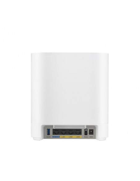Roteador ASUS EBM68(1PK) Expert Wifi, um sistema Wi-Fi 6 (802.11ax) tri-banda (2,4 GHz/5 GHz/5 GHz) com antenas internas. Oferece velocidades de até 4804 Mbit/s e suporta diversos protocolos de segurança, como SSH e WPS. Possui processador de 1,7 GHz, 1000 MB de memória interna e 256 MB de memória Flash. Inclui 3 portas Ethernet LAN, 1 porta USB 3.2 Gen 1 e compatibilidade com vários protocolos VPN.