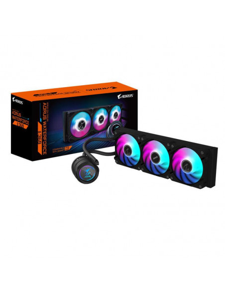 A Gigabyte AORUS WATERFORCE II 360 G2 representa a solução ideal para manter o seu processador a uma temperatura ideal, mesmo sob carga intensa. Este sistema de refrigeração líquida tudo-em-um (AIO) oferece um desempenho de arrefecimento excecional, combinando uma bomba de alta eficiência com três potentes ventoinhas de 12 cm. A sua compatibilidade com uma vasta gama de sockets de processador garante que se adapta perfeitamente à sua configuração.