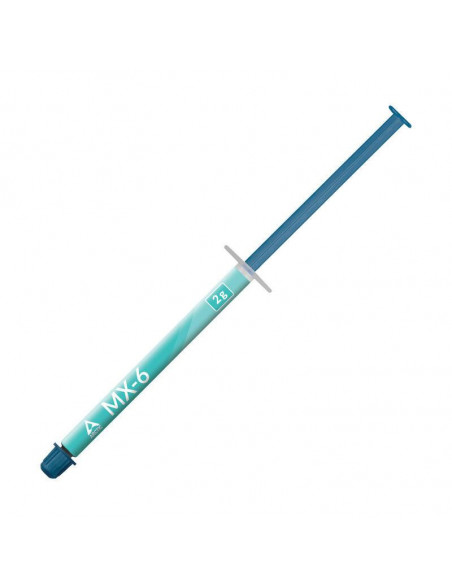 A pasta térmica Arctic MX-6 é uma solução de alta performance para garantir uma dissipação de calor eficiente nos seus componentes electrónicos. Com uma textura suave e um design otimizado para maximizar o contacto com as superfícies, esta pasta térmica garante uma transferência de calor superior, mantendo as temperaturas de funcionamento ideais. O seu peso de 2g é ideal para uma única aplicação, e a sua cor cinzenta permite uma fácil visualização e controlo da aplicação. O produto opera em temperaturas extremas, desde -50°C até 150°C, tornando-se compatível com uma vasta gama de dispositivos. A sua fórmula especial garante uma excelente condutividade térmica, resultando em temperaturas mais baixas e um aumento do desempenho do sistema, especialmente em situações de grande exigência. A embalagem compacta e simples facilita a sua utilização e armazenamento. Para uma aplicação eficiente, consulte as instruções do fabricante ou siga os tutoriais online para a sua instalação adequada.