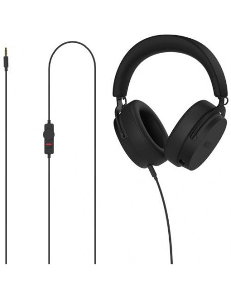 Para maior conveniência, os auscultadores incluem um controlo de volume rotativo, localizado diretamente no cabo. A construção robusta e o design confortável asseguram longas sessões de jogo sem fadiga. O peso de 269.5g está bem distribuído, o que contribui para o conforto durante o uso prolongado. O cabo de 2 metros de comprimento proporciona uma mobilidade suficiente para utilizadores de PC ou consolas. O produto inclui um cabo de áudio de 3,5mm e um adaptador USB para maior compatibilidade.