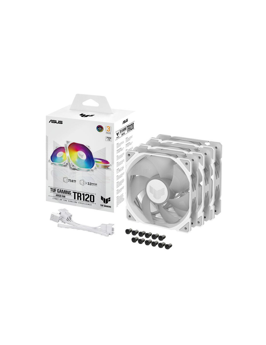Ventilador ASUS TUF Gaming TR120 ARGB Branco - 120mm, 3 Unidades, RGB