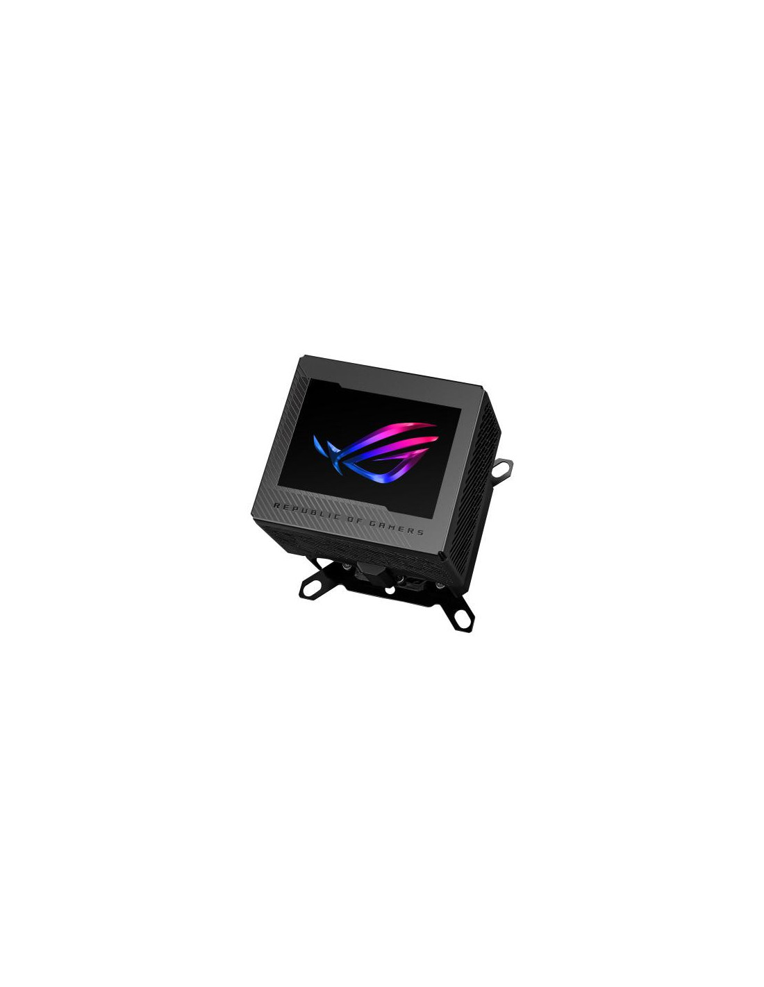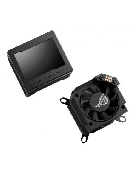 Bloco de água ASUS ROG Ryujin III WB para CPU, fabricado em cobre e com cor preta. Oferece arrefecimento eficiente para processadores de alto desempenho. Compatível com várias plataformas de sockets. Dimensões compactas e inclui um único ventilador.