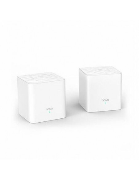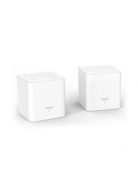 Pack duplo do sistema Mesh Wi-Fi Tenda Nova MW3.  Cobre ampla área com sinal Wi-Fi estável e de alta velocidade.  Fácil configuração e gestão através de app.  Ideal para casas grandes ou com múltiplos andares.  Oferece roaming sem interrupções entre os nós.