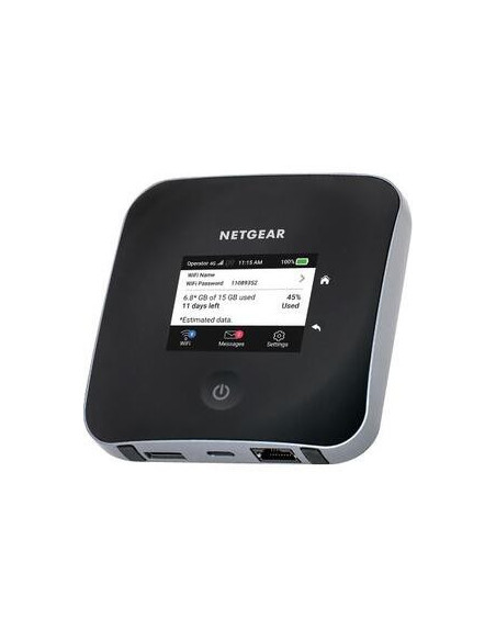 Modem/roteador sem fio Netgear Nighthawk MR2100, com tecnologia IEEE 802.11ac, oferecendo conectividade 4G LTE e Wi-Fi de alta velocidade. Possui portas Gigabit Ethernet e USB. Ideal para utilização doméstica ou profissional, oferecendo uma ligação estável e rápida. EAN: 0606449141887. * Conectividade 4G LTE; * Tecnologia Wi-Fi IEEE 802.11ac; * Portas Gigabit Ethernet; * Porta USB; * Design portátil.