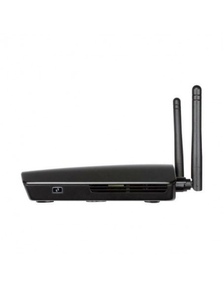 A conectividade sem fios é proporcionada pela tecnologia 802.11n Wireless N, com velocidades de até 300 Mbps (802.11n) e 54 Mbps (802.11g). Duas antenas MIMO não removíveis garantem uma cobertura sem fios eficiente. As opções de segurança incluem encriptação de dados WEP, WPA/WPA2 e 802.1x RADIUS, garantindo a proteção da sua rede. A interface web intuitiva facilita a configuração e a gestão do router.