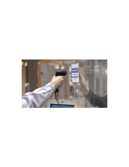 Leitor de código de barras 2D DL Quickscan Lite 2500.  Inclui kit de montagem perpendicular, cabo USB espiralado e suporte.  Para informações adicionais, contacte-nos.