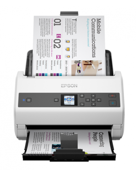 O scanner Epson WorkForce DS-870 é um scanner de alimentação por folhas com digitalização duplex, ideal para digitalizar documentos em alta resolução.  Oferece uma resolução óptica de 600 x 600 DPI e velocidade de 65 ppm. Dispõe de um visor LCD incorporado para fácil utilização.