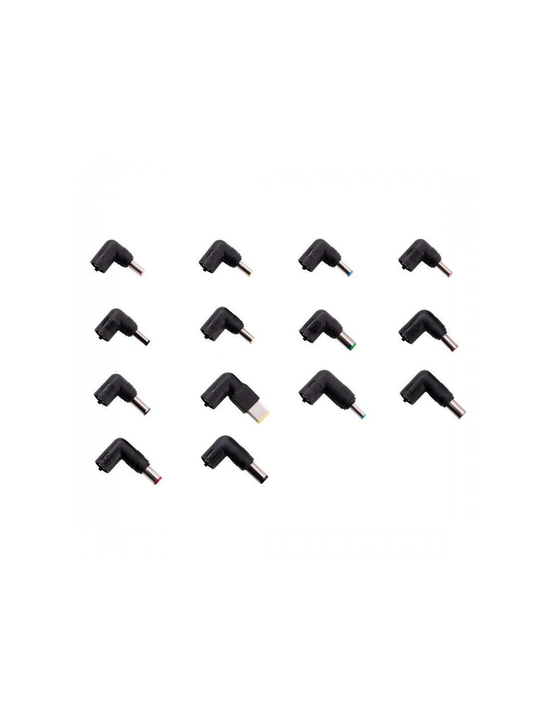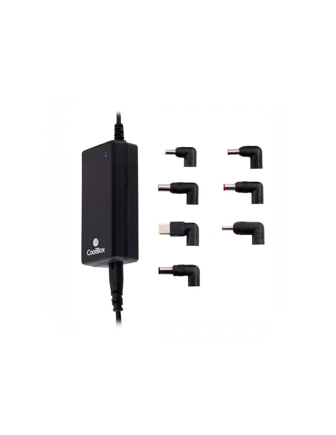 Carregador universal Coolbox de 65W, com seleção automática de voltagem. Inclui 14 pontas para compatibilidade com diversos modelos de portáteis.