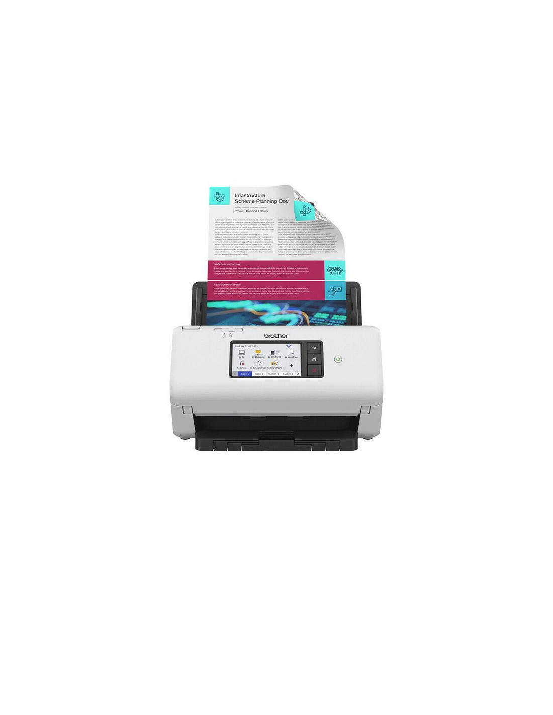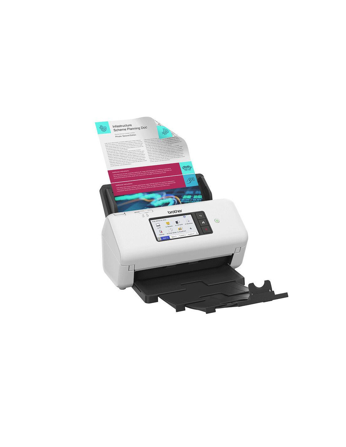 Scanner profissional Brother ADS-4700W, substituto do modelo ADS-2800W. Oferece digitalização de alta velocidade em frente e verso, com alimentador automático de documentos (ADF) para 80 folhas. Ideal para grandes volumes de trabalho, com capacidade para 6.000 folhas por dia. Integra conectividade WiFi e cablada, e inclui um painel tátil de 10,9 cm para fácil utilização. A sua velocidade de digitalização atinge 40 fpm / 80 ppm.