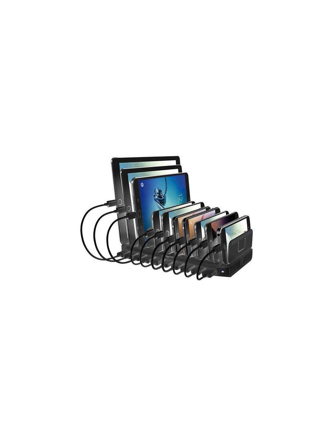 Com dimensões compactas (80 mm de altura, 270 mm de comprimento e 160 mm de profundidade) e um peso de 1.489 gramas, garante portabilidade e fácil integração em qualquer espaço. As dez portas USB asseguram a carga eficiente de uma variedade de dispositivos, otimizando o processo para eficiência e economia de tempo. Sua compatibilidade universal elimina a necessidade de adaptadores adicionais, simplificando o processo para diferentes dispositivos. Imagine a praticidade de carregar todos os seus dispositivos num só lugar, sem a confusão de vários cabos e carregadores.
