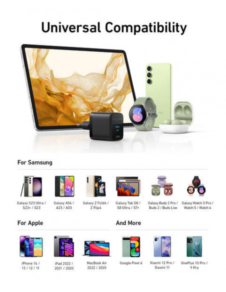 Carregador Anker A2642G11: 25W, USB Tipo-C, Carregamento Rápido, Compatível com Vários Dispositivos