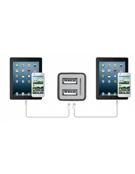 O carregador Trust 19171 é uma solução simples e eficiente para carregar vários dispositivos simultaneamente. Com o seu funcionamento automático, este carregador adapta-se a uma vasta gama de dispositivos, ajustando a potência de saída para otimizar o processo de carregamento. A sua natureza universal significa que é compatível com smartphones, tablets e outros dispositivos com ligação USB.