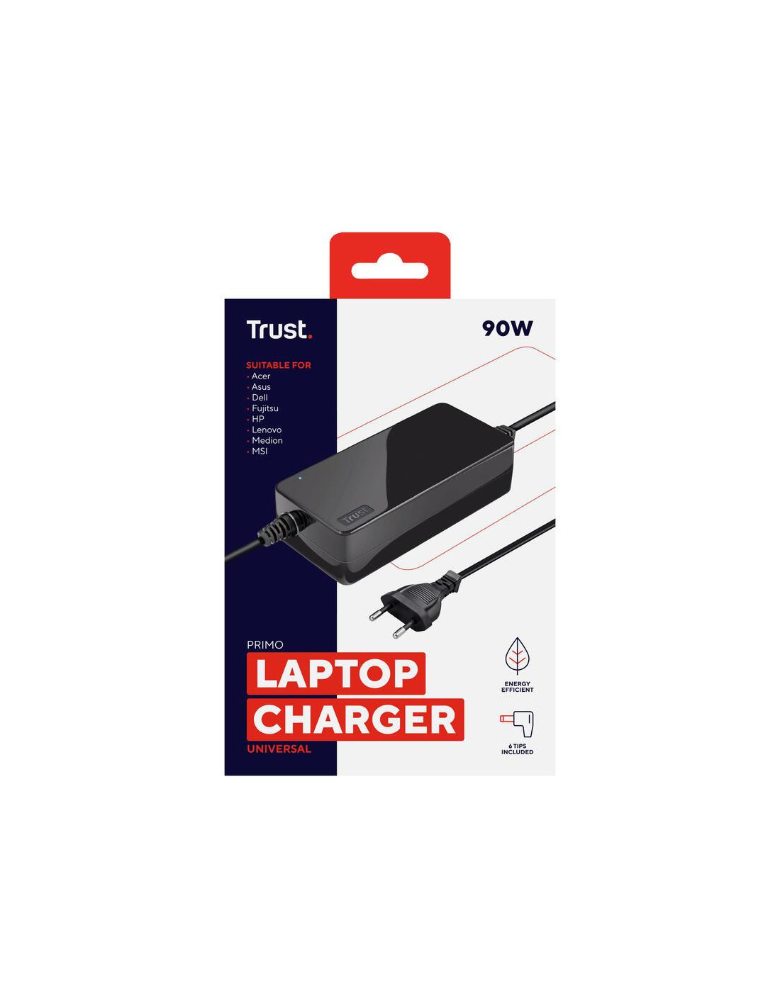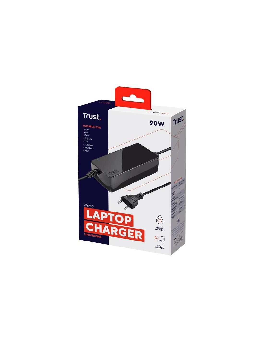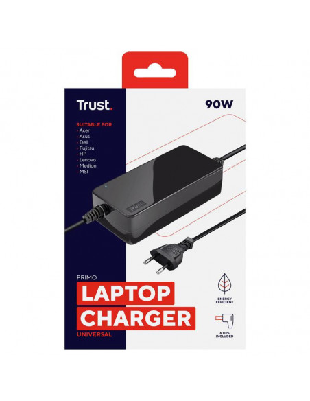 O carregador universal para portátil Trust Primo 22142 é uma solução versátil e confiável para carregar os seus dispositivos portáteis. Este carregador de 90W integra uma variedade de conectores, permitindo a sua utilização com diversos modelos de portáteis de marcas populares como Acer, Asus, Compaq, Dell, Fujitsu, HP, Lenovo, Medion, MSI, Packard Bell e Samsung. A compatibilidade abrangente elimina a necessidade de múltiplos carregadores, oferecendo conveniência e praticidade.