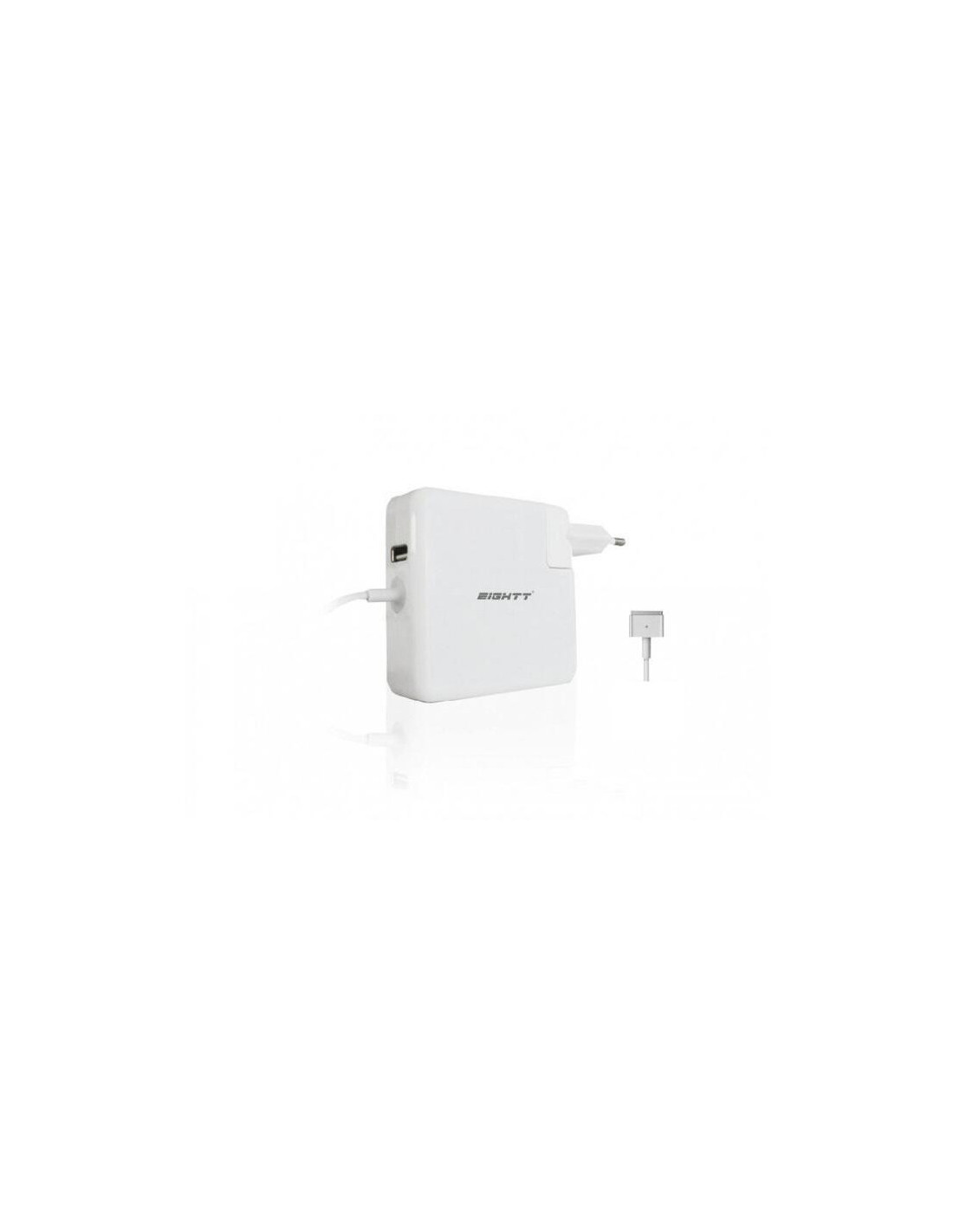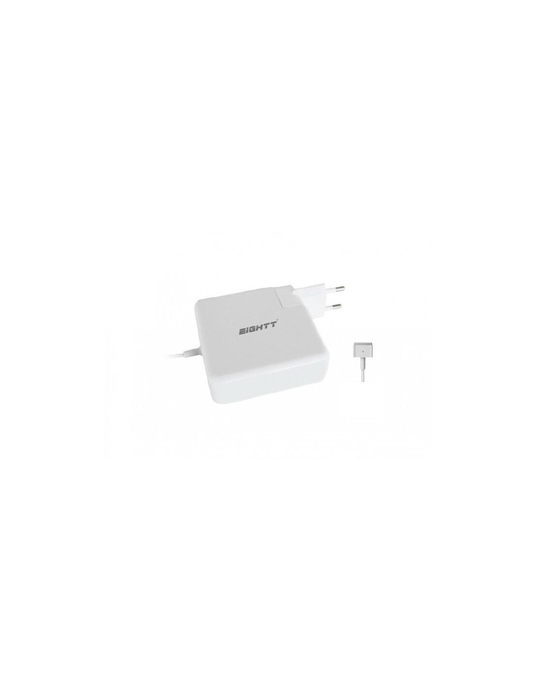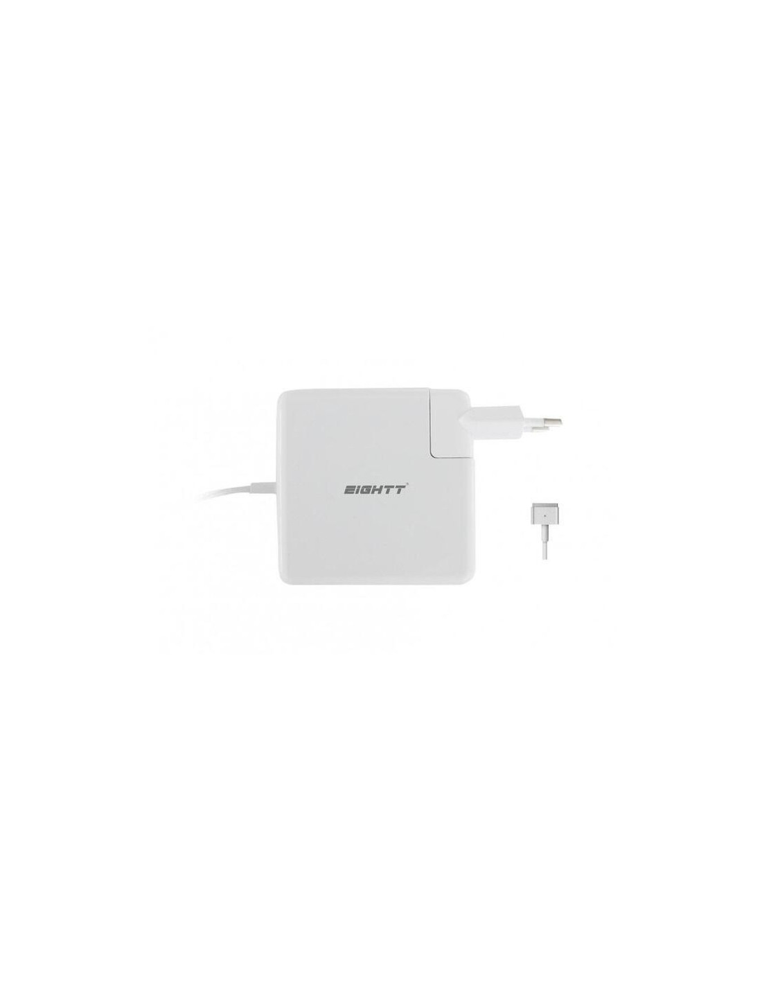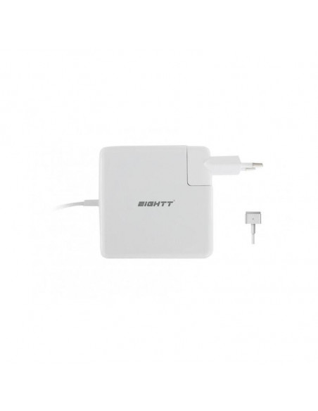 O carregador Eightt EAUTT é uma solução de carregamento versátil e eficiente para dispositivos Apple. Este carregador universal suporta múltiplas potências, oferecendo 45W, 60W e 85W para carregamento MagSafe 2, e adicionalmente uma porta USB de 10W (5V, 2.1A) para carregar outros dispositivos simultaneamente. Ideal para quem necessita de carregar o seu portátil Apple e outros dispositivos com uma única fonte de alimentação.
