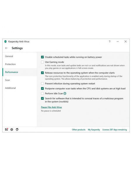 Mini caixa contendo o Kaspersky Anti-Virus 2020, uma licença base para um ano. Oferece proteção antivirus essencial para o seu computador.