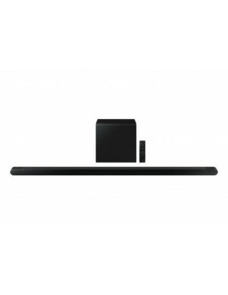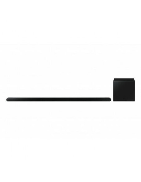 Samsung HW-S800B. Canais de saída de áudio: 3.1.2 canais, Classificação de Energia RMS: 330 W, Descodificadores de som: 3D Sound, DTS Virtual:X, Dolby Atmos, Dolby Digital Plus. Conectividade do subwoofer: Sem fios, Localização do subwoofer: Separado. Cor do produto: Preto, Assistente virtual: Amazon Alexa & Google Assistant. Tecnologia de conetividade: Com fios e sem fios, Codec bluetooth: SBC. Consumo de energia da soundbar: 28 W, Consumo de energia do subwoofer: 26 W, Consumo de energia (standby): 0,5 W
