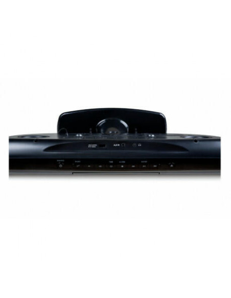 Bluetooth®; Sistema estéreo; Equalizador; Rádio FM; 50 estações de rádio predefinidas; Despertador; Leitor de CD; AUX-IN 3,5 mm; Fone de ouvido 3,5 mm (fone de ouvido não incluído); Carregador USB; Controle remoto (bateria incluída); Total Music Potência 60W; Montável na parede; Fonte de alimentação 230V.
