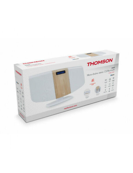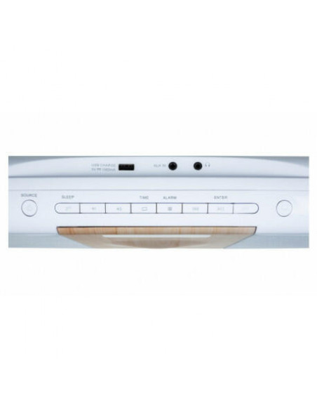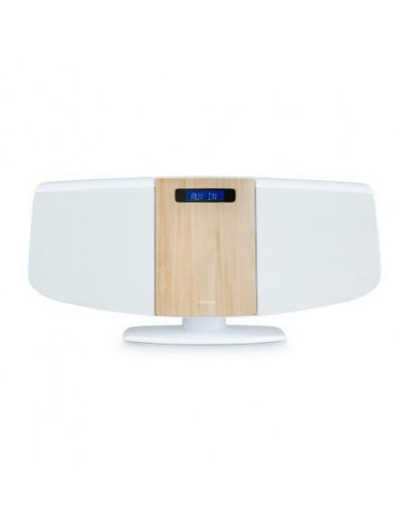 Bluetooth®; Sistema estéreo; Equalizador; Rádio FM; 50 estações de rádio predefinidas; Despertador; Leitor de CD; AUX-IN 3,5 mm; Fone de ouvido 3,5 mm (fone de ouvido não incluído); Carregador USB; Controle remoto (bateria incluída); Total Music Potência 60W; Montável na parede; Fonte de alimentação 230V.