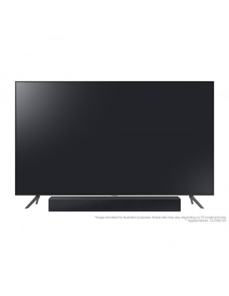 Samsung HW-C400. Canais de saída de áudio: 2.0 canais. Cor do produto: Preto, Compressão de áudio: AAC, FLAC, MP3, WAV. Consumo de energia do subwoofer: 20 W, Consumo de energia (standby): 0,5 W. Largura: 641 mm, Profundidade: 107 mm, Altura: 66,5 mm. Comprimento da embalagem: 928 mm, Profundidade da embalagem: 155 mm, Altura da embalagem: 120 mm ;