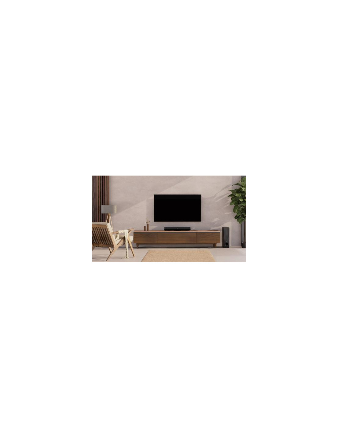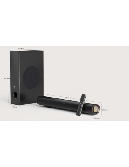 Potência Total: 120 Watts RMSDrivers: 2.1 canais com subwoofer integradoResposta de Frequência: 40Hz - 20kHzNível de Pressão Sonora: 90dBConectividade: Bluetooth 5.0, HDMI ARC, óptico e entrada AUXAlimentaçãoFonte de Alimentação: Adaptador AC BivoltConsumo: 50 Watts em operaçãoEficiência Energética: Classificação AConstruçãoDimensões: 90 cm de largura x 8 cm de altura x 10 cm de profundidadePeso: 3.5 kgMaterial do Enclosure: MDF de alta densidade para reduzir vibraçõesAcabamento: Preto fosco com detalhes em grãos de madeiraRecursos AdicionaisControle Remoto: Inclui controle remoto para fácil operaçãoModo de Diálogo: Ajusta a curva de som para clareza nas falasEqualizador Customizável: Permite ajustes personalizados de som