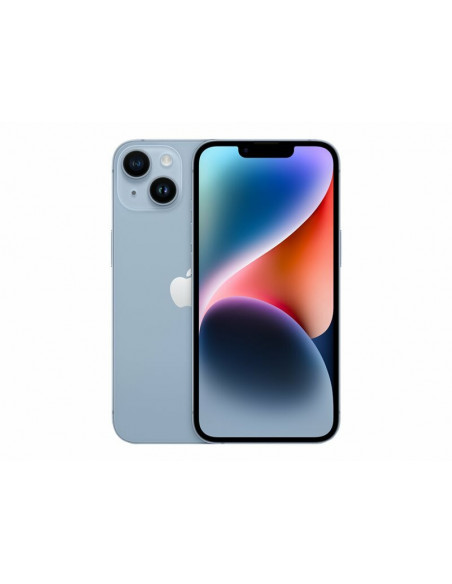 O iPhone 14 da Apple, na cor azul, oferece desempenho potente e recursos avançados num design elegante.