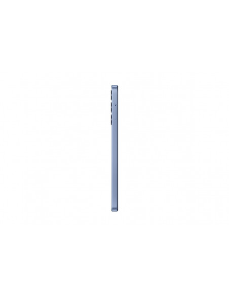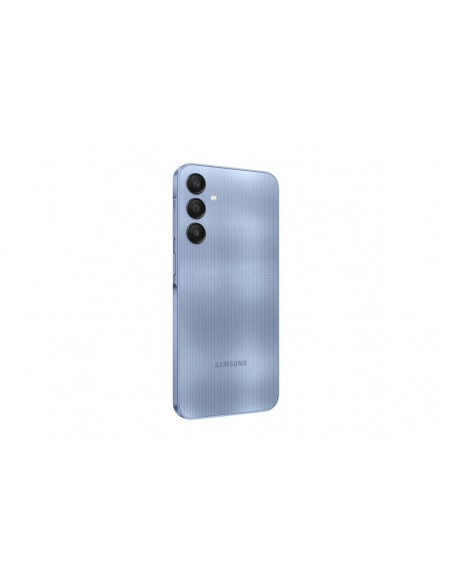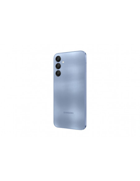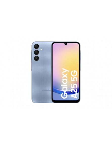 Smartphone Samsung Galaxy A25 5G com ecrã de 6.5" AMOLED, processador Exynos 1280, 6GB de RAM, 128GB de armazenamento interno, câmara principal de 50MP e bateria de 5000mAh. Disponível na cor azul. Sistema operativo Android 14.