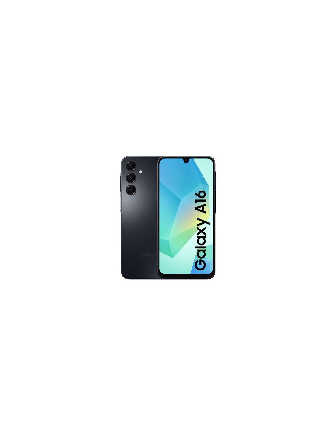 Smartphone Samsung Galaxy A16 com 128GB de armazenamento interno e ecrã AMOLED de 6.7 polegadas. O design é em cor preta. Informações adicionais sobre o processador, RAM e sistema operativo são necessárias para uma descrição completa.