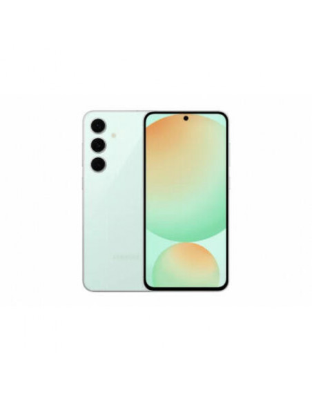 Samsung Galaxy S24 FE. Tamanho do ecrã na diagonal: 17 cm (6.7"), Resolução: 1080 x 2340 pixels. Família de processador: Samsung Exynos. Capacidade RAM: 8 GB, Capacidade de armazenamento interno: 256 GB. Resolução da câmara traseira (numérico): 50 MP, Tipo de câmara traseira: Câmara tripla. Capacidade cartão SIM: Dual SIM. Sistema operativo instalado: Android 14. Capacidade da bateria: 4700 mAh. Cor do produto: Azul menta. Peso: 213 g