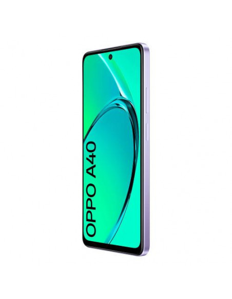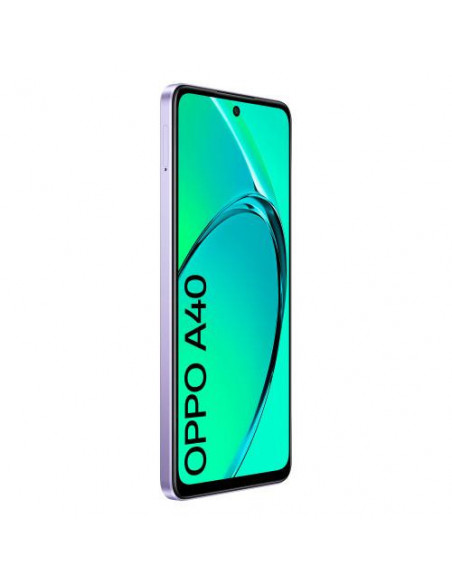 O OPPO A40 é um smartphone com 128GB de armazenamento e 4GB de RAM, apresentado numa elegante cor roxa. Destaca-se pela sua tecnologia OPPO Glow, certificação militar STD-810H, e uma câmara principal de 50MP com sensor Flicker. A bateria de 5100mAh com carregamento rápido SUPERVOOC de 45W garante longa duração. É resistente à água e pó com classificação IP54 e tecnologia Splash Touch.