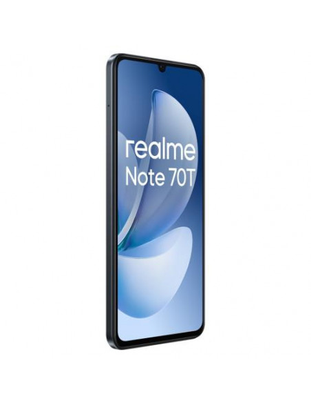 O Realme Note 70T é um smartphone com ecrã de 6.74 polegadas, processador Unisoc T7250, 4GB de RAM e 256GB de armazenamento interno. Destaca-se pela sua bateria de longa duração com 6000mAh e carregamento rápido de 15W. O design robusto inclui certificação TÜV para resistência a quedas e salpicaduras, com classificação IP64. Integra um sistema de câmara dupla na traseira com sensor principal de 50MP e uma câmara frontal de 5MP. A experiência é complementada pelo sistema operativo Android 15 com interface Realme UI.