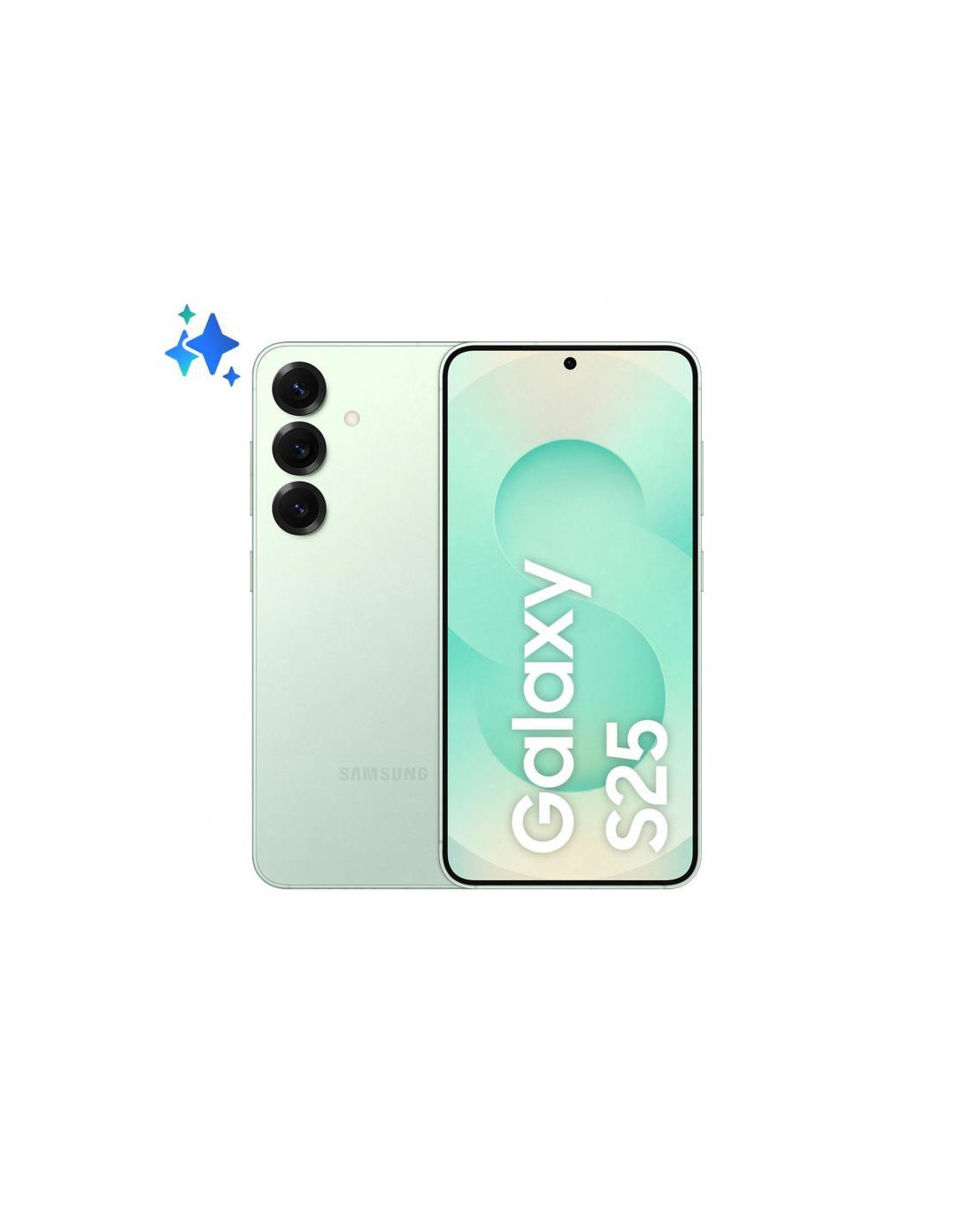 Samsung Galaxy S25 . Tamanho do ecrã na diagonal: 15,8 cm (6.2"), Resolução: 2340 x 1080 pixels. Família de processador: Qualcomm Snapdragon, Modelo de processador: 8 Elite. Capacidade RAM: 12 GB, Capacidade de armazenamento interno: 128 GB. Resolução da câmara traseira (numérico): 50 MP, Tipo de câmara traseira: Câmara tripla. Capacidade cartão SIM: Dual SIM. Sistema operativo instalado: Android 15. Capacidade da bateria: 4000 mAh. Cor do produto: Azul menta. Peso: 162 g ;