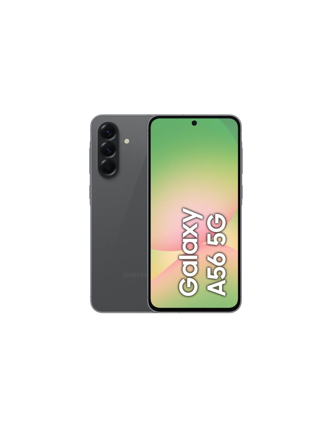 O Samsung Galaxy A56 5G é um smartphone com ecrã de 6,7 polegadas (17cm) com resolução de 1080 x 2340 pixels. Integra um processador Samsung Exynos 1580, 8GB de RAM e 256GB de armazenamento interno. Possui uma câmara traseira tripla com sensor principal de 50MP. É um dual SIM com Android 15 e bateria de 5000mAh. Disponível na cor preta.