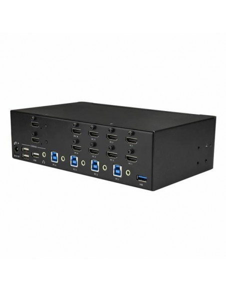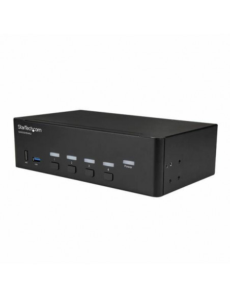 StarTech.com Switch Conmutador KVM de 4 Puertos HDMI - 4K de 30Hz - de Pantalla Doble. Tipo de puerto de teclado: USB, Tipo de puerto de ratón: USB, Tipo de puerto de vídeo: HDMI. Tipo HD: 4K Ultra HD, Máxima resolución: 3840 x 2160 Pixeles, Tasa de transferencia de datos (max): 5 Gbit/s. Color del producto: Negro, Material de la carcasa: Acero, Indicadores LED: Poder, Estado. Fuente de energía: Corriente alterna, Voltaje de entrada AC: 100 - 240 V, Corriente de entrada: 0.6 A. Ancho: 220 mm, Profundidad: 130 mm, Altura: 63 mm