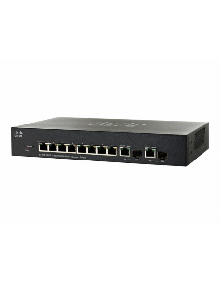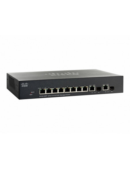 Conmutador de nivel 3 Cisco SF302-08PP 10 Puertos Gestionable - 8 x POE+ - 2 x RJ-45 - 2 x Ranuras de Expansión - 10/100Base-TX, 10/100/1000Base-T - De Escritorio