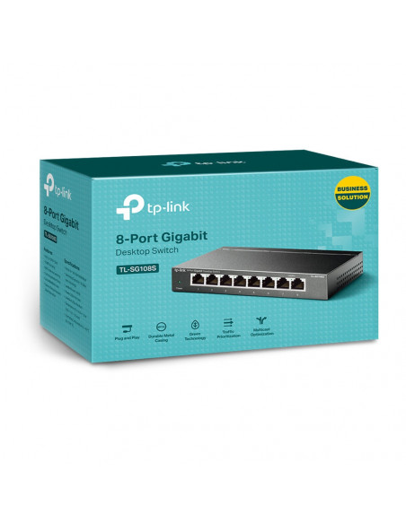 Em resumo, o TP-Link TL-SG108S é uma excelente escolha para quem procura uma solução de rede simples, fiável e de alto desempenho. A combinação de facilidade de uso, velocidade Gigabit Ethernet e suporte QoS faz deste switch uma opção ideal para melhorar a sua rede.