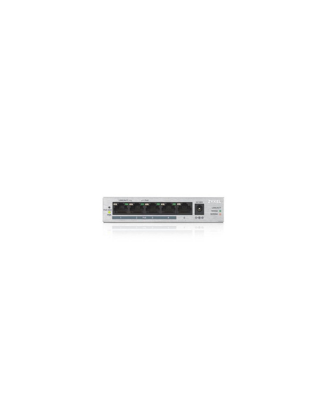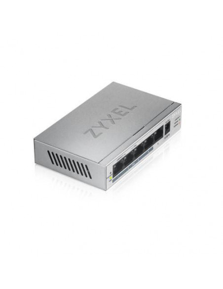 Este switch não administrado ZYXEL GS1005HP oferece conectividade Gigabit Ethernet (10/100/1000) com 5 portas RJ-45. Suporta PoE (Power over Ethernet) para alimentar dispositivos compatíveis. Com uma capacidade de comutação de 10 Gbps e uma tabela de endereços MAC de 2048 entradas, é ideal para pequenas redes. O seu design compacto e cor prateada complementam qualquer ambiente de trabalho. Este switch é fácil de configurar e usar, tornando-se uma solução ideal para empresas e utilizadores domésticos que precisam de uma solução simples e eficiente.