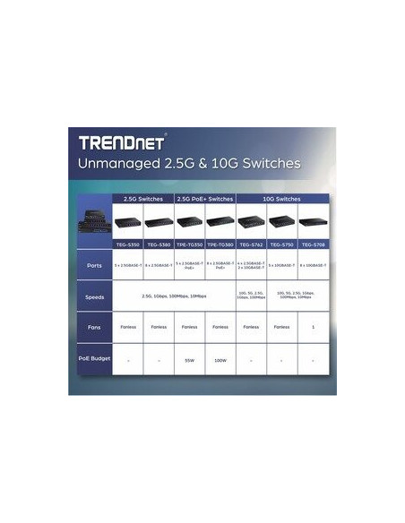 Switch de Rede Trendnet TPE-TG350: 5 Portas, 2.5 Gigabit Ethernet, PoE+