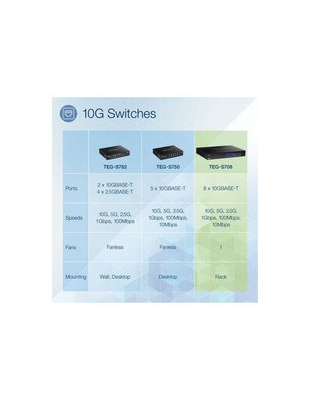 - Velocidade: 10GBase-T, 5GBase-T, 2.5GBase-T