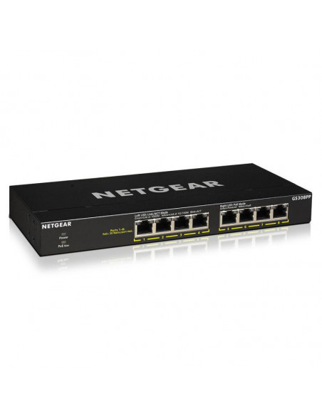 NETGEAR GS308PP - Interruptor - sem gestão - 8 x 10/100/1000 (PoE+) - desktop, montável na parede - PoE+ (83 W) - alimentação DC
