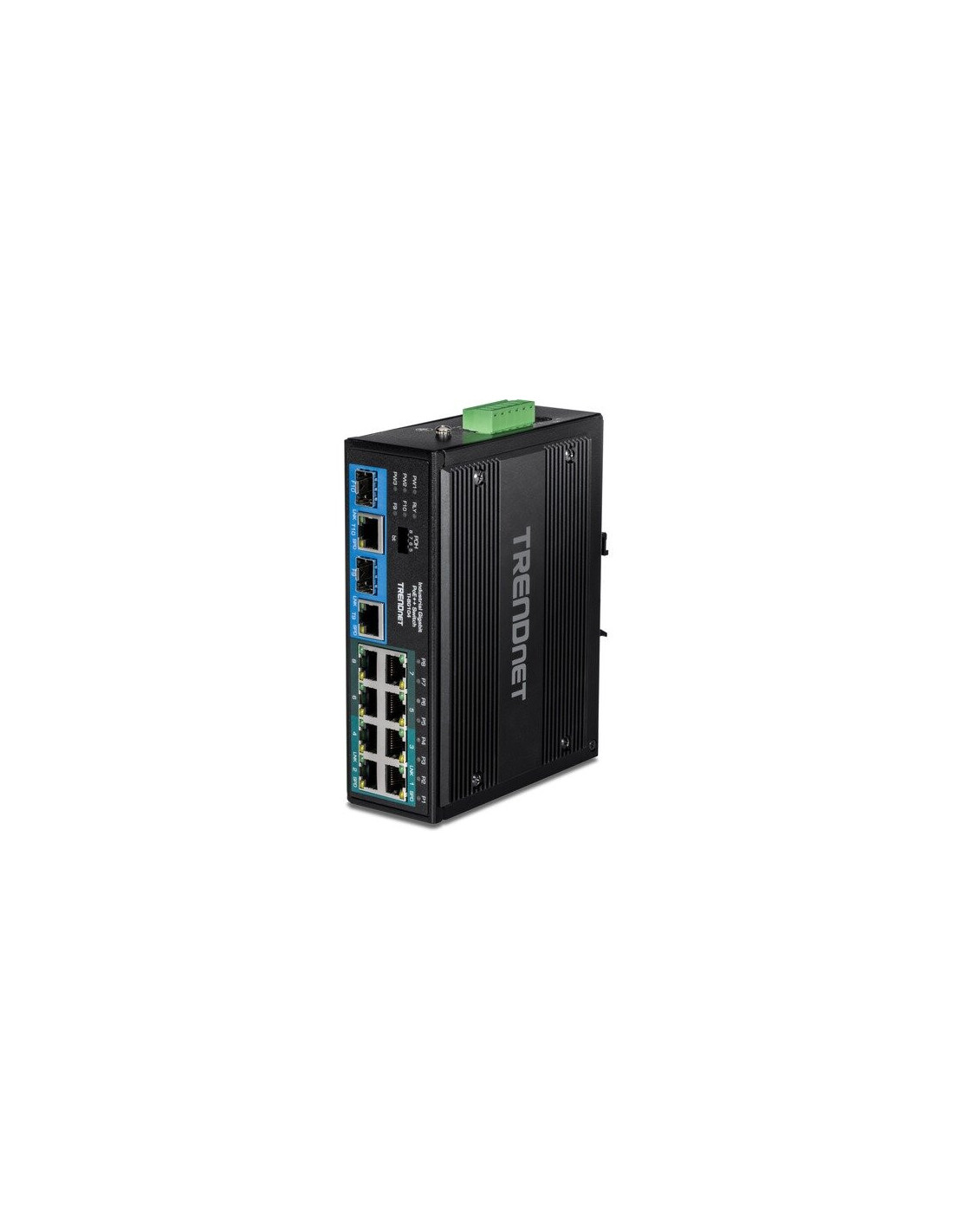 O switch Gigabit Ethernet industrial Trendnet TI-BG104 de 10 portas oferece desempenho superior e gestão de energia eficiente. Ideal para ambientes industriais, suporta PoE++ e montagem em trilho DIN.
