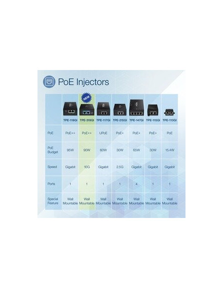 O Injetor PoE++ Trendnet TPE-319GI oferece uma solução de alimentação eficiente para dispositivos de rede que requerem alta potência. Com um design compacto e montagem na parede, este injetor suporta até 90W e possui um único porto de entrada e saída de 10 Gigabit Ethernet.