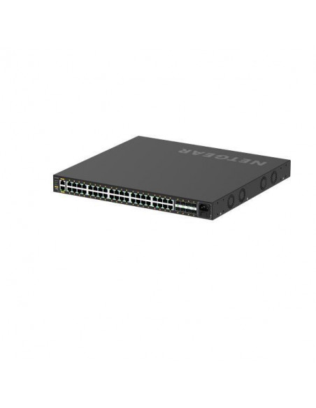 Switch Netgear GSM4248PX-100EUS gerenciado, com 40 portas Gigabit Ethernet PoE+ (960W), 8 portas Uplink SFP/SFP+ e suporte a roteamento de camada 3. Ideal para ambientes de alta densidade. Oferece gestão de camada 2+, 4093 VLANs e QoS.