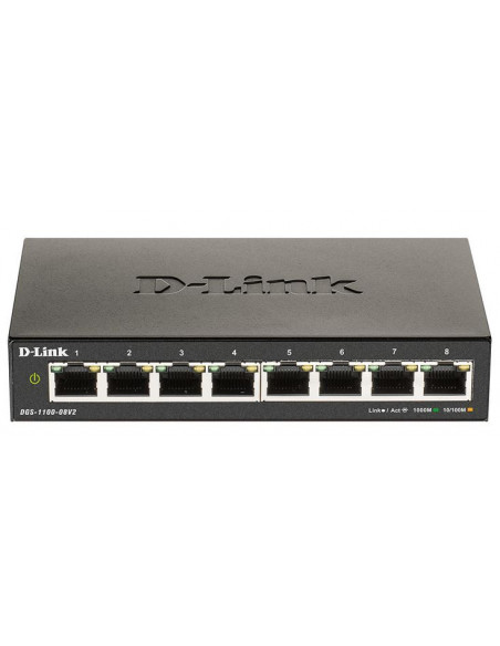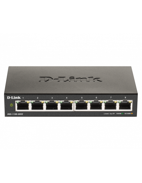 Switch D-Link DGS-1100-08V2 Gigabit 8 Portas Gerido L2, 16 Gbit/s e Preto