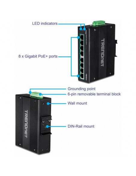 8-Port Industrial Gigabit Poe+ Cpnt Din-Rail Switch (24 - 56v)