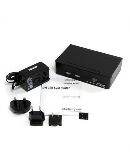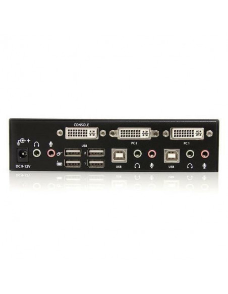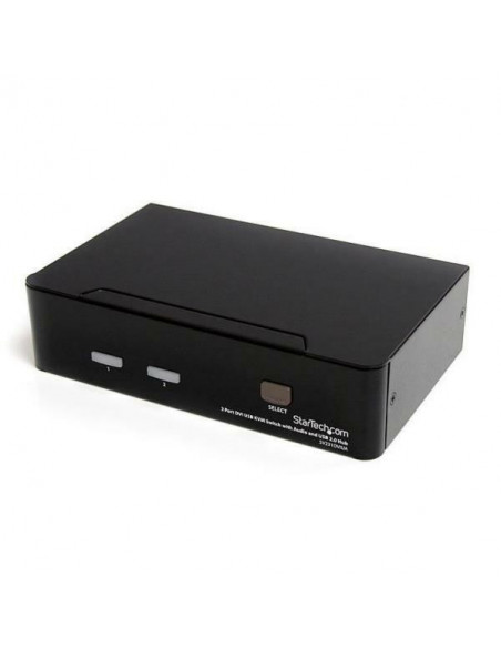 O Conmutador KVM DVI USB de 2 Portas StarTech.com SV231DVIUA é a solução ideal para gerir eficientemente dois computadores a partir de um único conjunto de periféricos. Este dispositivo permite controlar dois sistemas informáticos equipados com USB e DVI através de um único monitor, teclado, rato e colunas, com dois periféricos USB adicionais através das portas USB integradas. A sua interface intuitiva, com comandos de acesso directo e botões no painel frontal, torna a comutação entre computadores simples e rápida.