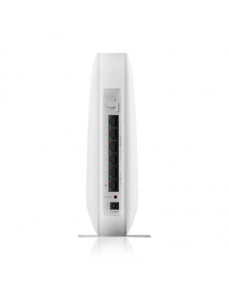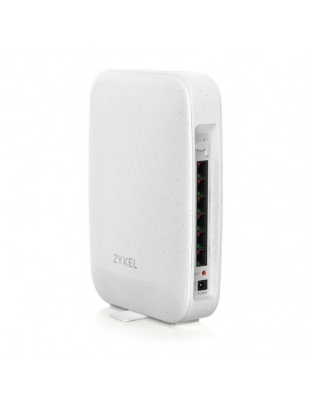 Router Zyxel USG-LITE 60AX com Wi-Fi 6, ideal para redes domésticas e pequenas empresas. Possui uma porta WAN de 2.5 Gigabit Ethernet e quatro portas LAN Gigabit Ethernet, oferecendo velocidades de transferência de dados elevadas. Inclui funcionalidades avançadas de segurança, como firewall e VPN, e é compatível com Mesh WiFi. Design compacto e elegante em branco.