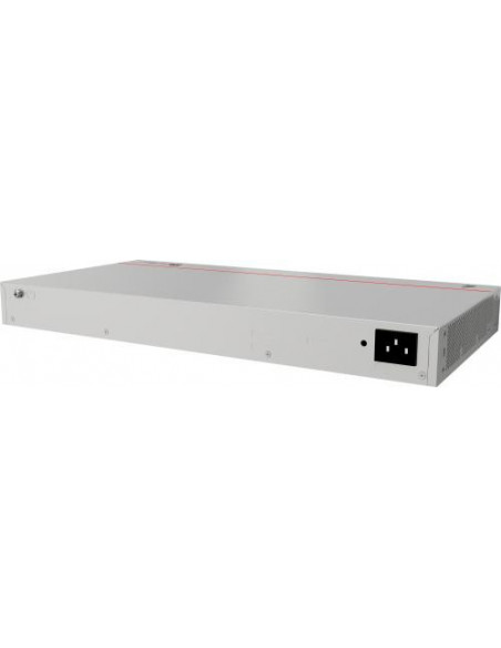 O Huawei S310-48P4X é um switch Gigabit Ethernet de 1U, concebido para redes empresariais. Este switch oferece 48 portas RJ-45 Gigabit Ethernet (10/100/1000) e 4 portas SFP+ 10 Gigabit, fornecendo uma alta capacidade de comutação e conectividade. A principal característica é o suporte a Power over Ethernet (PoE), com um orçamento de 380W, permitindo alimentar dispositivos PoE através do switch. O switch possui um design de 1U, ideal para instalação em racks de 19 polegadas. Possui também uma porta de consola RJ-45 para configuração e gestão. O dispositivo é na cor cinza e inclui fonte de alimentação. As suas dimensões são 442 mm de largura, 220 mm de profundidade e 43,6 mm de altura.