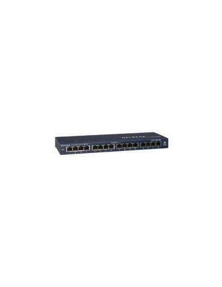 Switch Gigabit Ethernet Netgear GS116GE (NRPAR228) com 16 portas RJ-45 10/100/1000 Mbps. Não gerido, sem PoE. Ideal para pequenas redes. Design compacto e fácil instalação.