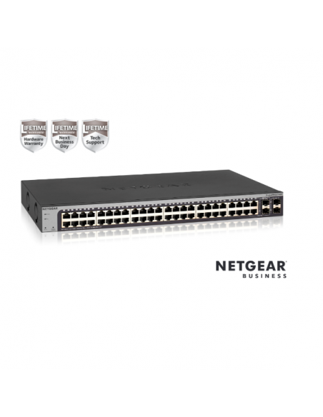 O switch NETGEAR ProSafe GS748T é uma solução robusta e eficiente para redes de pequenas e médias empresas, oferecendo um desempenho excepcional. Com 48 portas Gigabit Ethernet 10/100/1000 Mbps e 4 portas Uplink (duas portas 1GbE BaseT e duas portas combo 1GbE SFP/BaseT), este switch garante uma alta capacidade de comutação para uma grande variedade de dispositivos, desde computadores e servidores a impressoras e câmeras de segurança. A gestão através de um navegador web torna a configuração e monitoramento da rede simples e intuitivo, mesmo para utilizadores sem experiência em administração de redes.